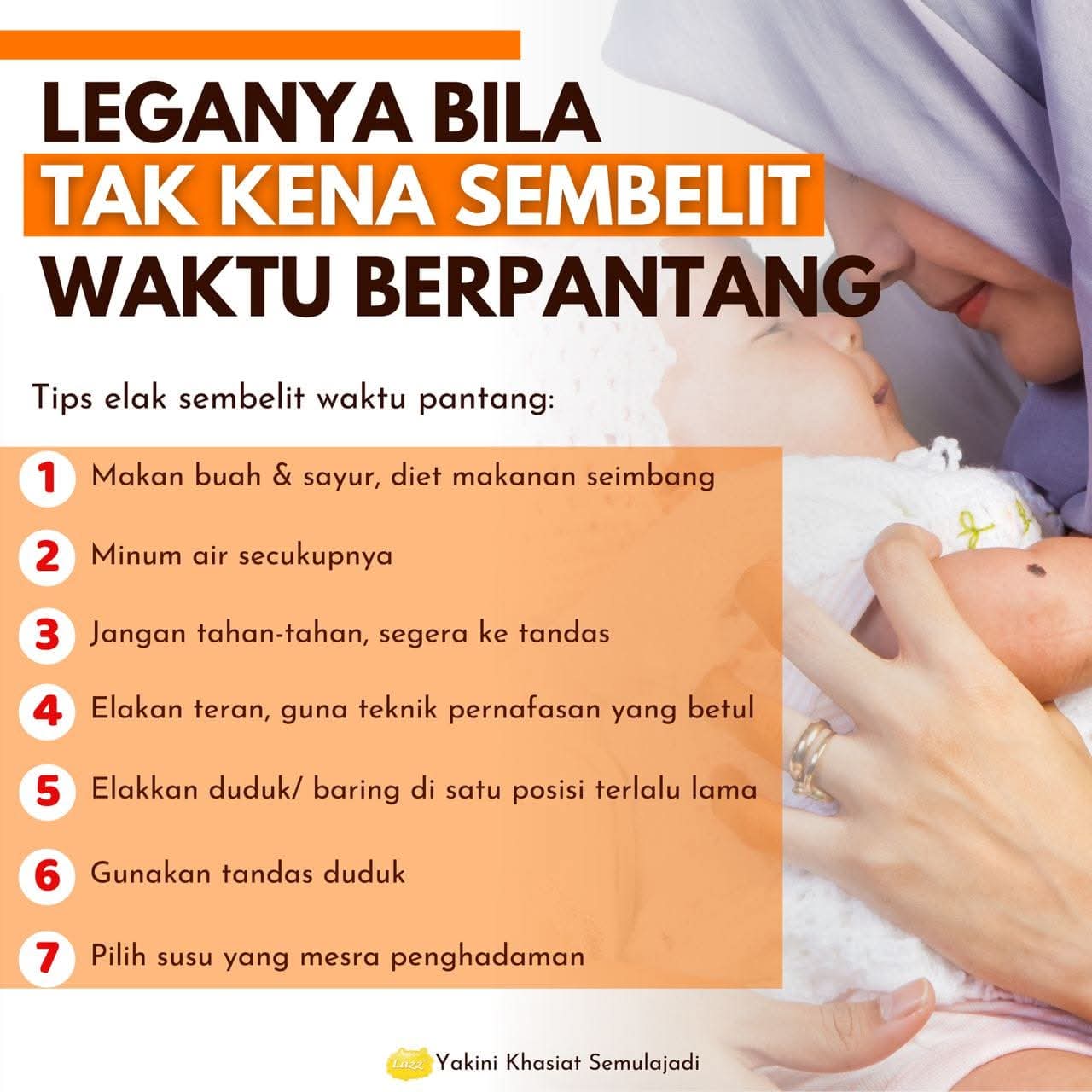 Ingatlah bahawa badan anda telah melakukan sesuatu yang luar biasa dan memerlukan masa untuk kembali normal. Bersabarlah dengan diri sendiri dan utamakan penjagaan diri. Dengan langkah-langkah yang betul, anda boleh mengatasi masalah sembelit dan menikmati fasa awal keibuan dengan lebih selesa dan tenang. Jika sembelit berlarutan lebih dari seminggu, disertai dengan kesakitan yang teruk, atau terdapat pendarahan, segera dapatkan nasihat perubatan.