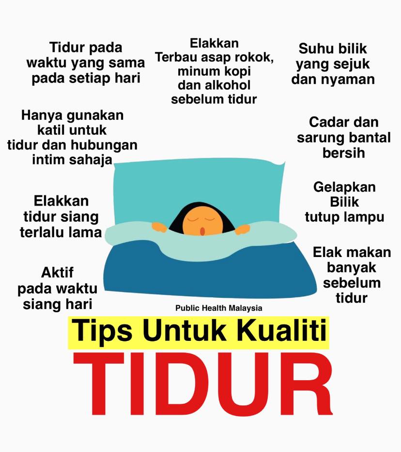 - Elakkan hidangan berat, pedas, atau berlemak sekurang-kurangnya 3 jam sebelum tidur.